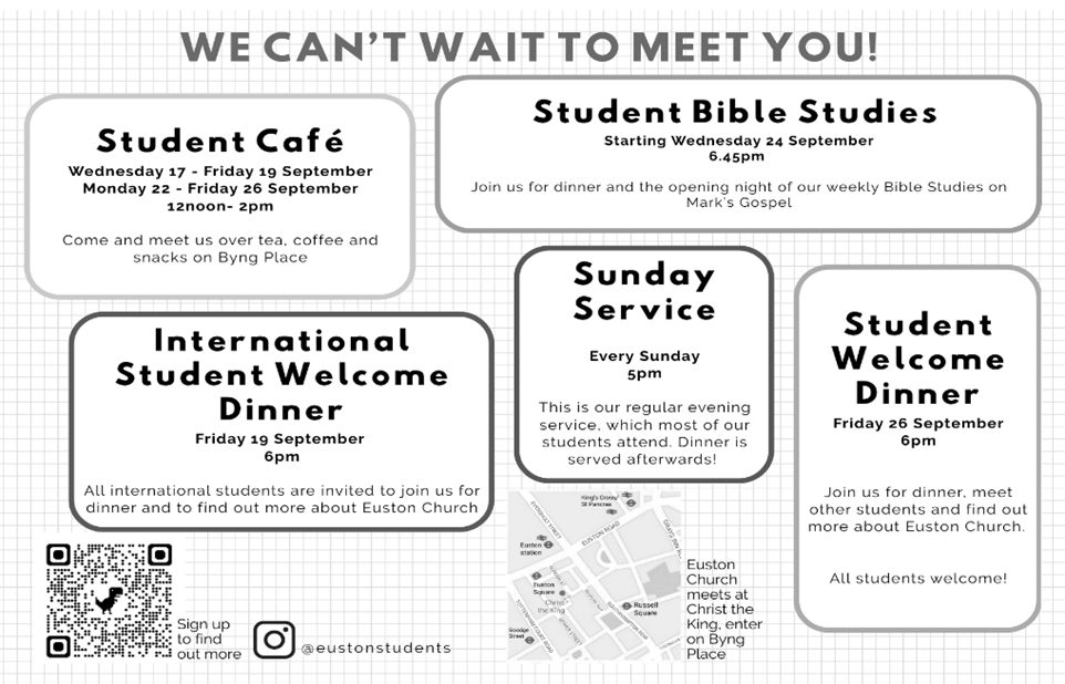 Give thanks for the incredible opportunity to reach students in this location and particularly during ‘Freshers Week’. Pray that Christian students moving to London would settle into church quickly, that non-Christian students would be reached by the events and come to know Jesus and for our student team in this busy time.